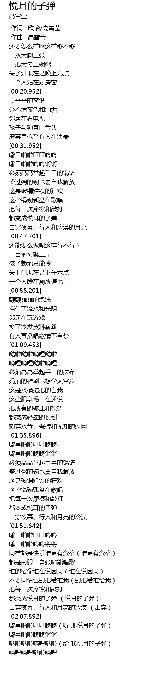 | [02:01.894] | 都变成悦耳的子弹 (悦耳的子弹) |
