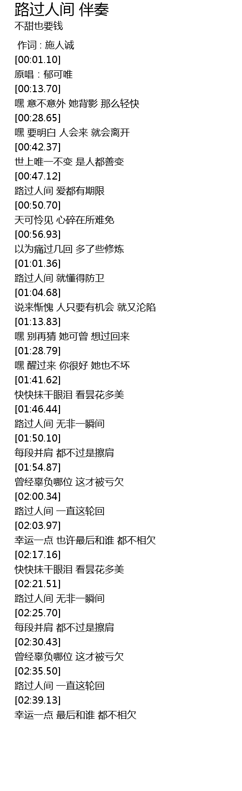 | [02:21.70] | 路过人间 无非一瞬间 |