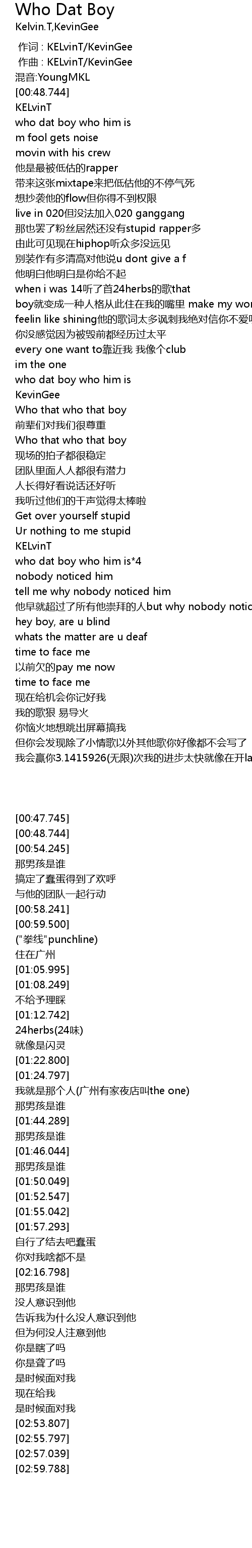 | [01:14.239] | when i was 14 tīng le shǒu 24herbs de gē that boy jiù biàn chéng yī zhǒng rén gé cóng cǐ zhù zài wǒ de zuǐ lǐ make my words crazy |