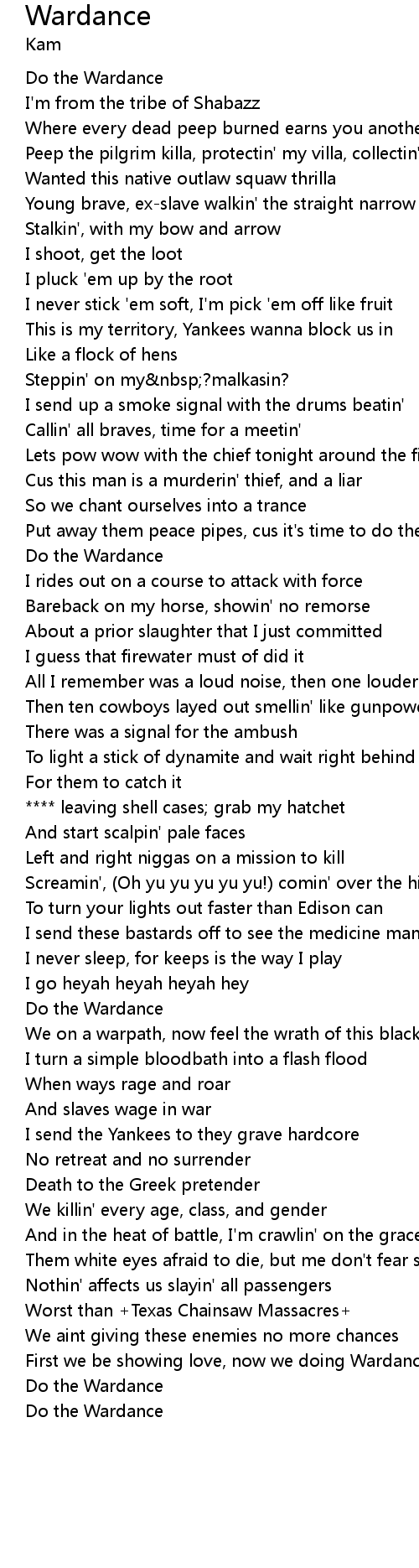 | Put away them peace pipes, cus it's time to do the Wardance | |