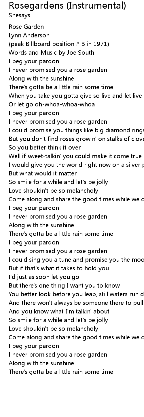I never promised you a rose garden |