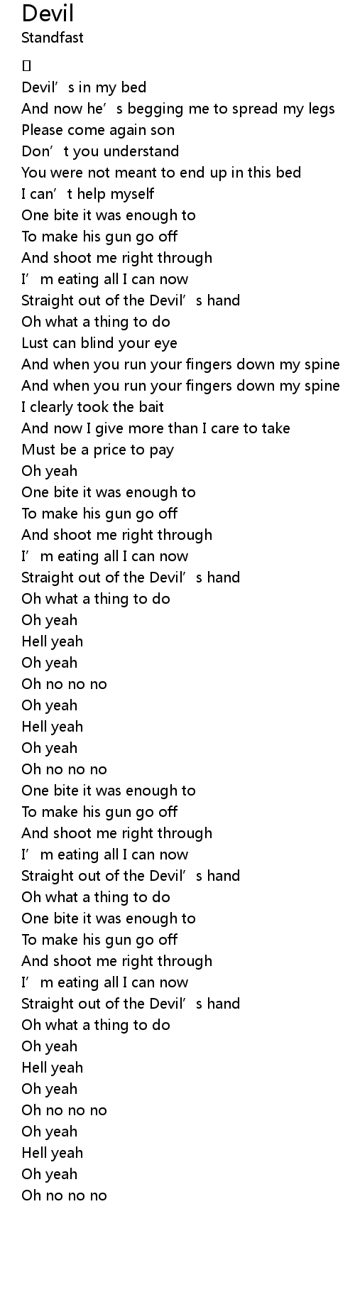 | [00:15.464] | Devil' s in my bed |