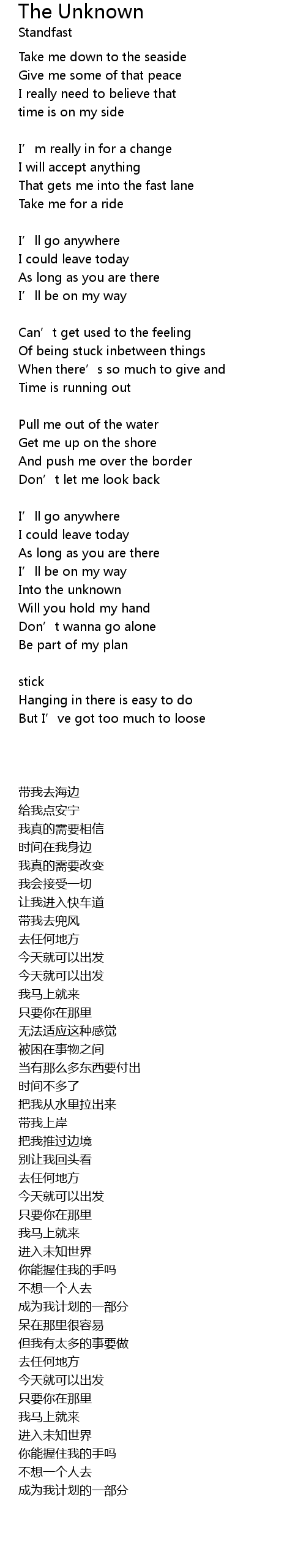 | Song | The Unknown |