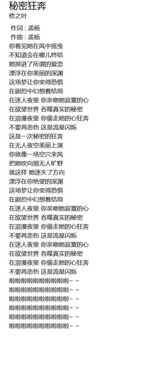 | [02:01.28] | 这是一次秘密的狂奔 |