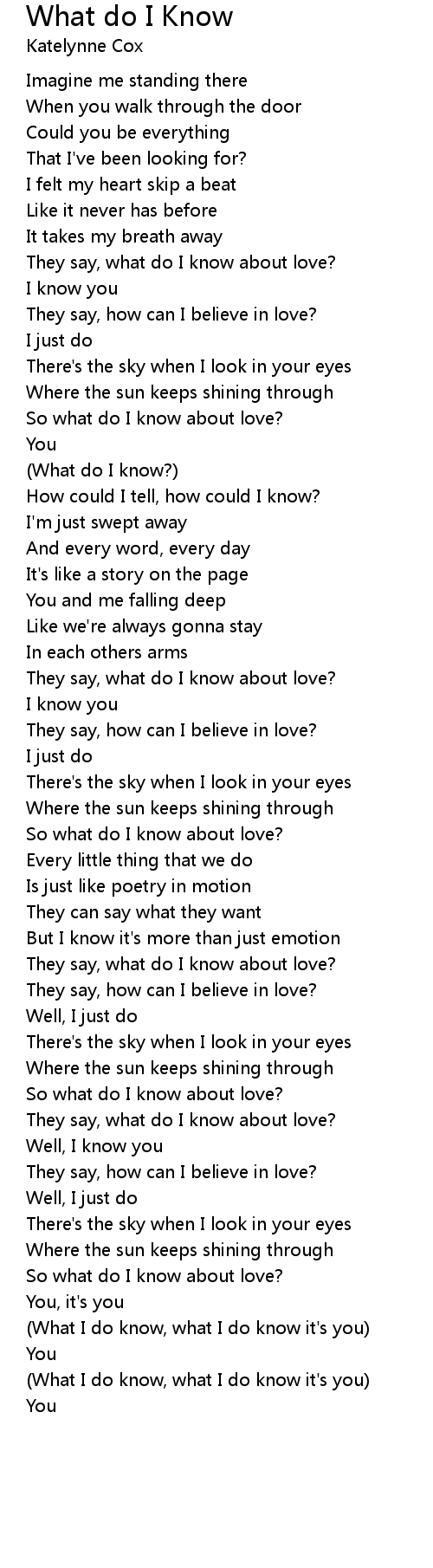 They say, what do I know about love? |