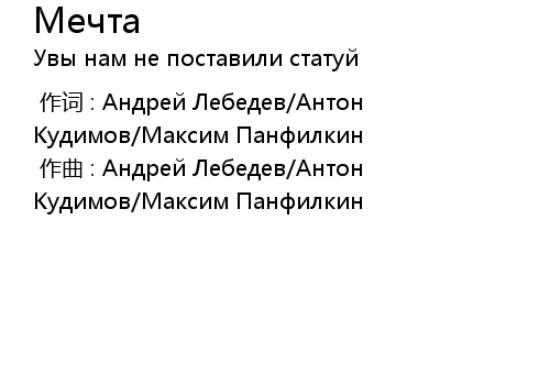 | [00:00.000] | 作词 : Андрей Лебедев/Антон Кудимов/Максим Панфилкин |