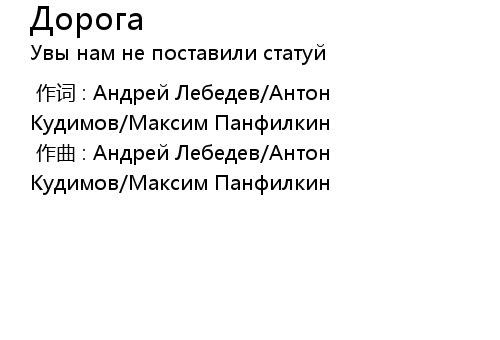 | [00:00.000] | 作词 : Андрей Лебедев/Антон Кудимов/Максим Панфилкин |