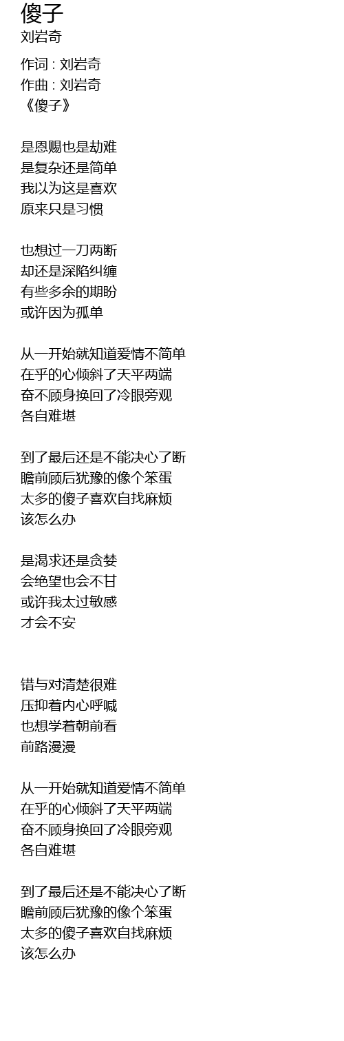 | 作词 : 刘岩奇 | |