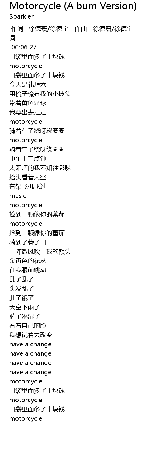 | [03:11.93] | motorcycle |