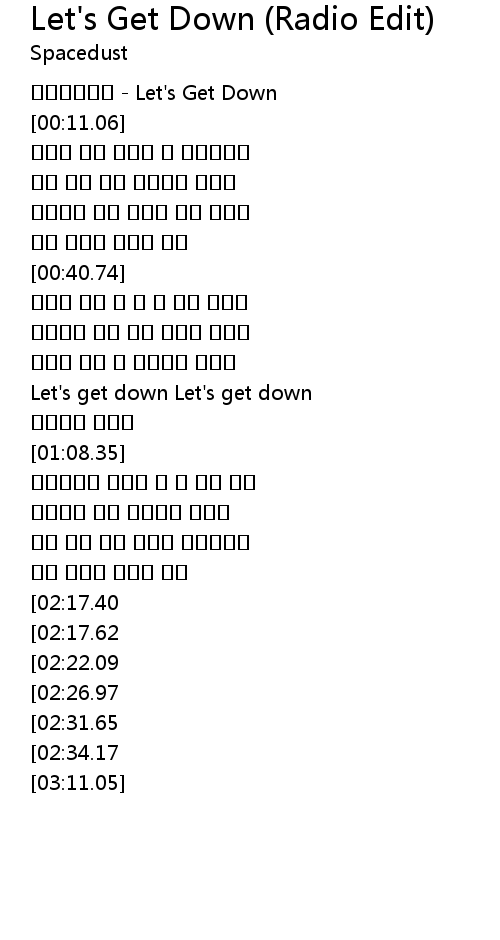 | [02:50.96][02:31.65][01:43.69] | Let' s get down Let' s get down |
