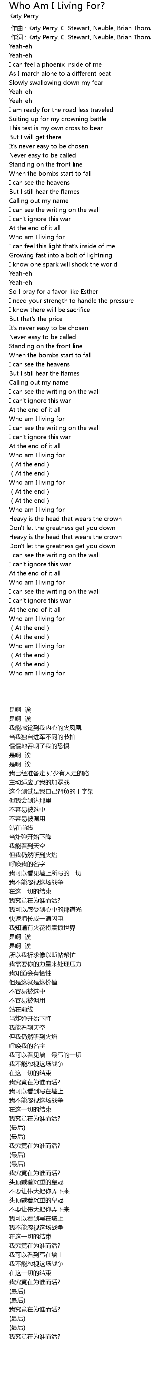 | [00:01.00] | zuò cí : Katy Perry, C. Stewart, Neuble, Brian Thomas |