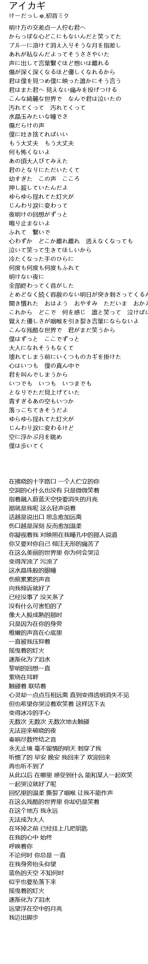 | [02:18.793] | とめどなく続く容赦のない明日が突き刺さってくるんだよ |