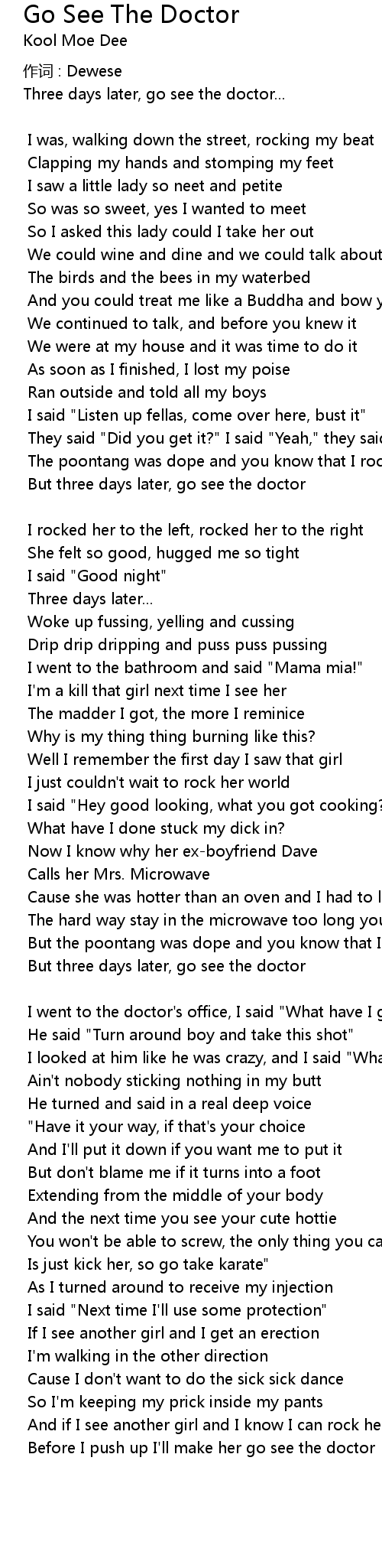 | Song | Go See The Doctor |