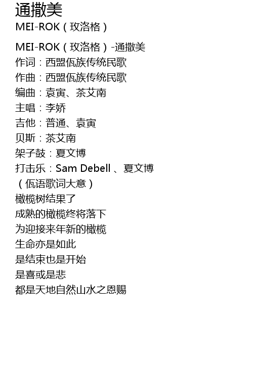 | [00:01.192] | 作曲:西盟佤族传统民歌 |