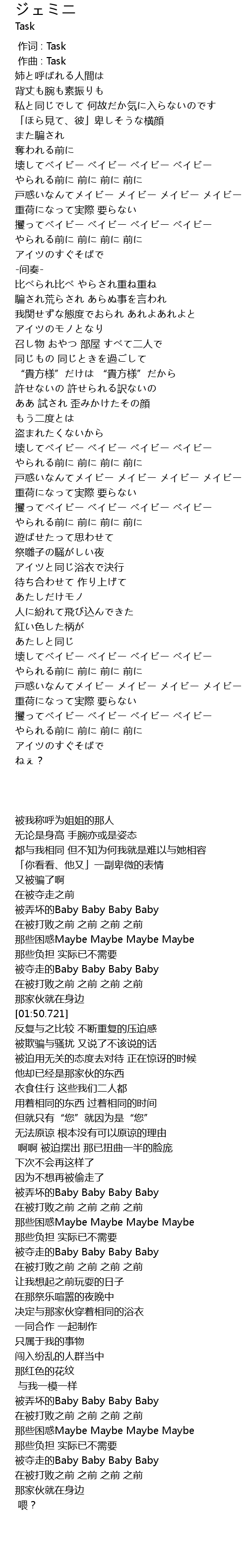 | [00:00.000] | 作词 : Task |
