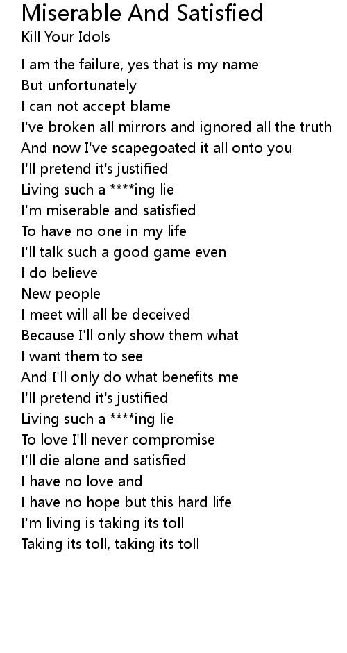 I'm miserable and satisfied |