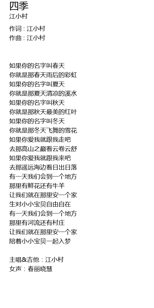 | 作词 : 江小村 | |