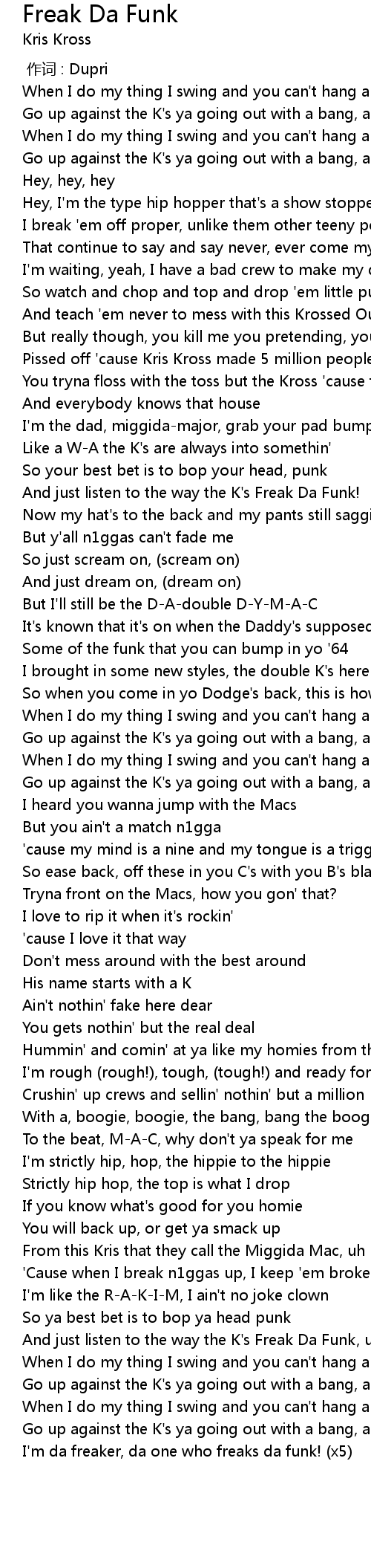 | [02:20.95] | I' m da freaker, da one who freaks da funk! x5 |
