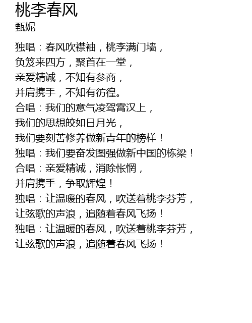 | [01:58.49] | 独唱:让温暖的春风,吹送着桃李芬芳, |