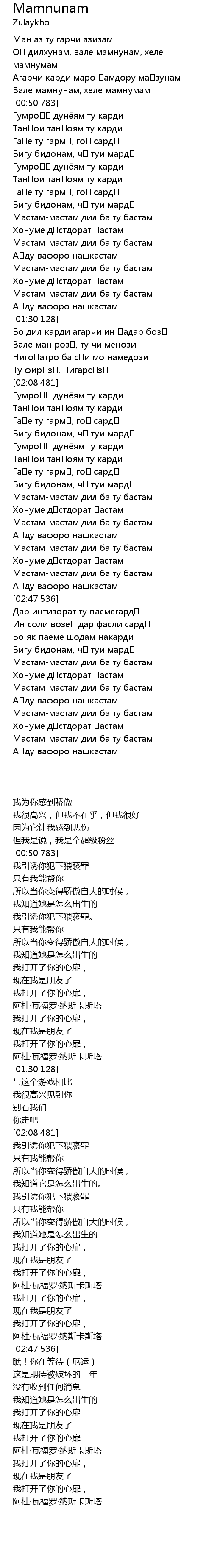 Оҳ дилхунам, вале мамнунам, хеле мамнумам |