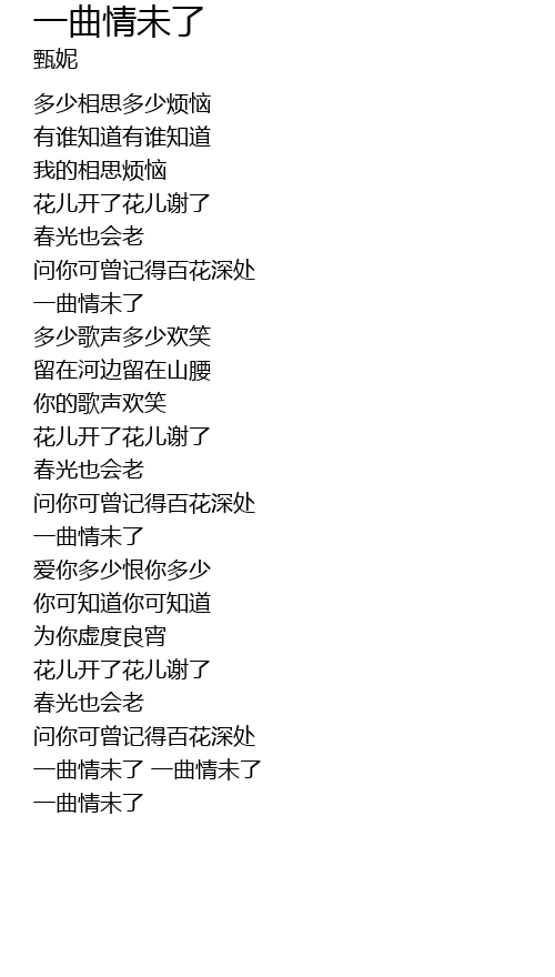| [00:53.70] | yī qǔ qíng wèi liǎo |