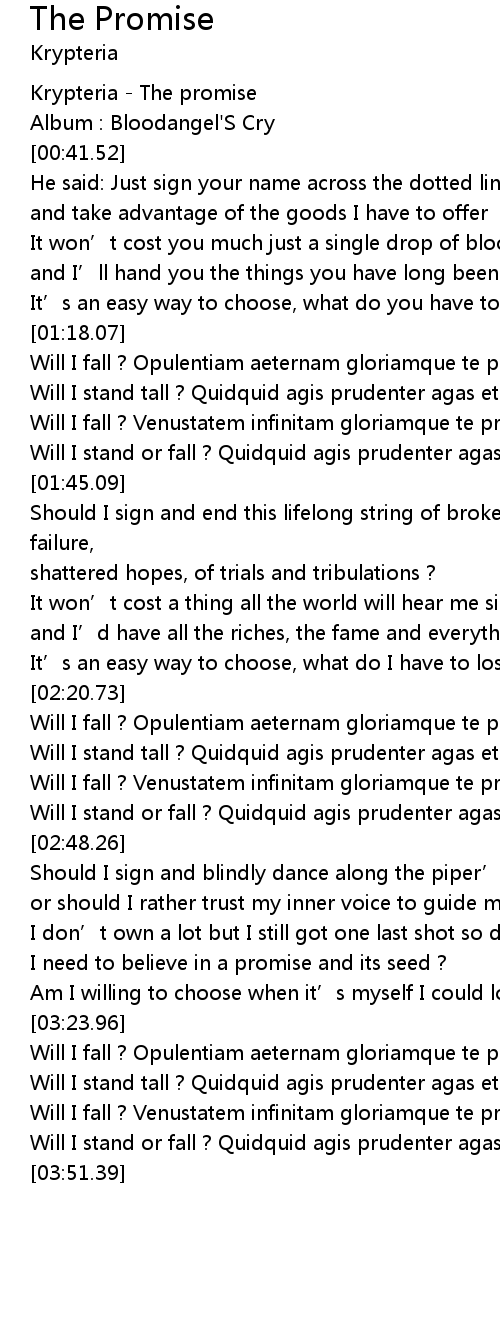 | [00:11.52] | Krypteria The promise |