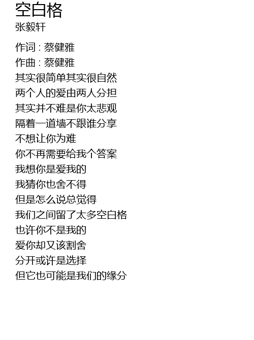 | wo men zhi jian liu le tai duo kong bai ge | |