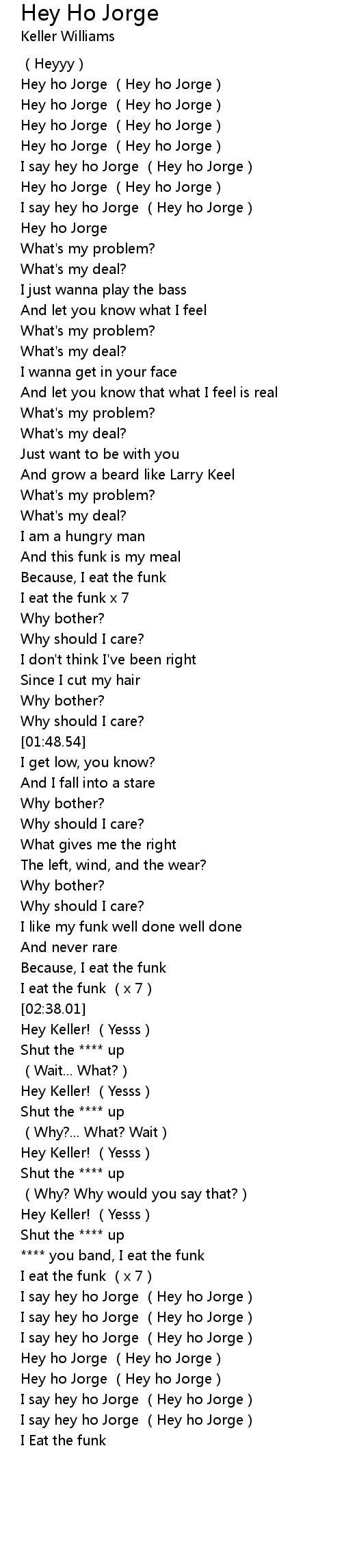 | [04:02.92] | I say hey ho Jorge (Hey ho Jorge) |