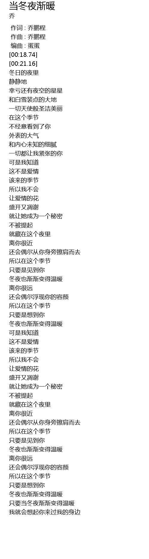 | [02:21.89] | 冬夜也渐渐变得温暖 |