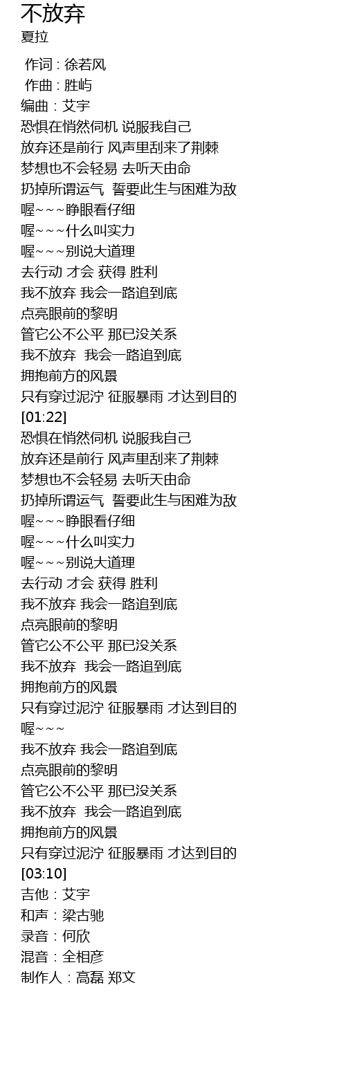 | [01:01] | wǒ bù fàng qì wǒ huì yí lù zhuī dào dǐ |