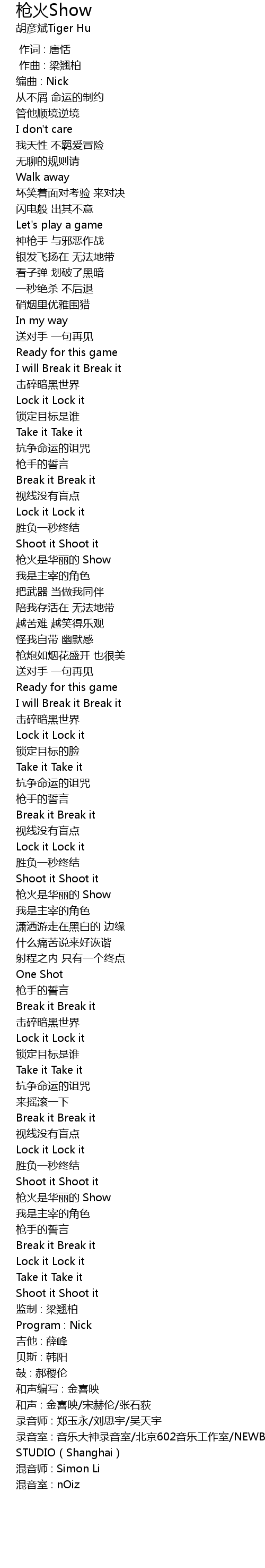 | Song | 枪火Show |