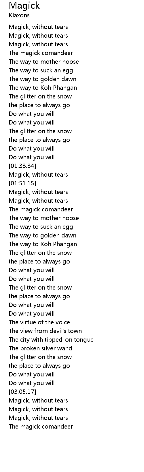 | [00:44.46] | Magick, without tears |