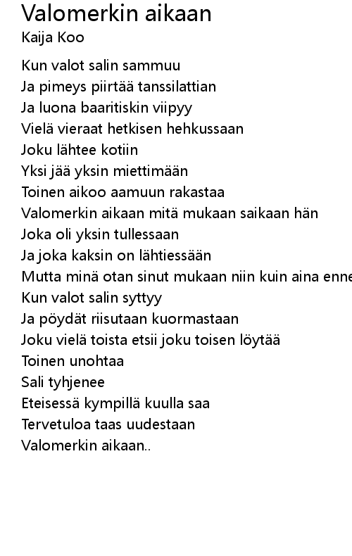 | Song | Valomerkin aikaan |
