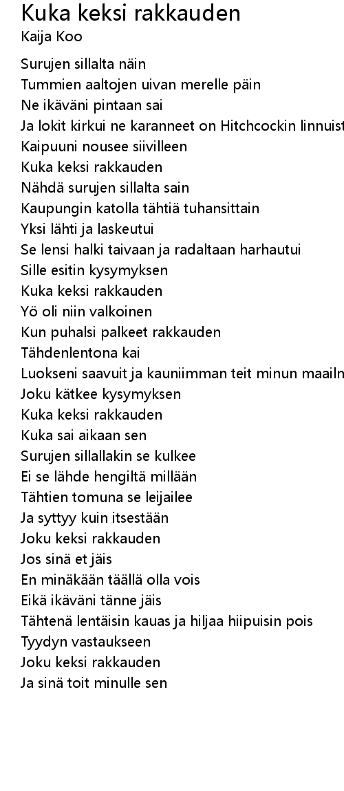 | Tähtenä lentäisin kauas ja hiljaa hiipuisin pois | |