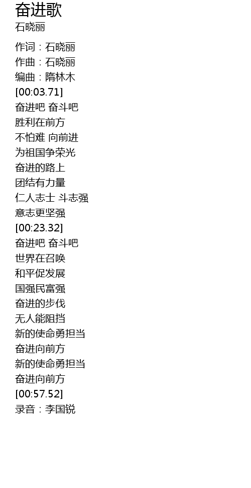 | [00:32.54] | 奋进吧 奋斗吧 |