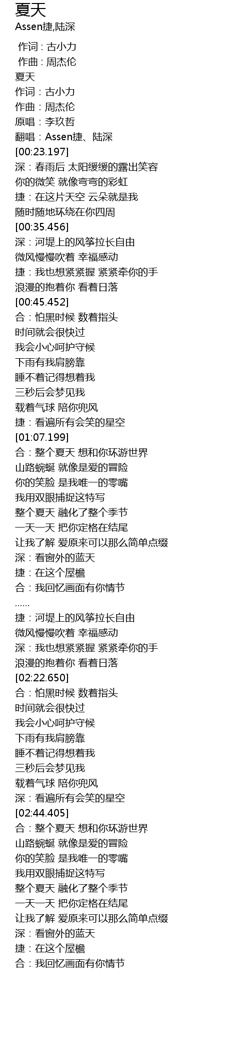 | [00:20.456] | 翻唱:Assen捷、陆深 |