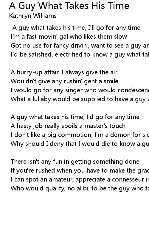What a lullaby would be supplied to have a guy what takes his time |