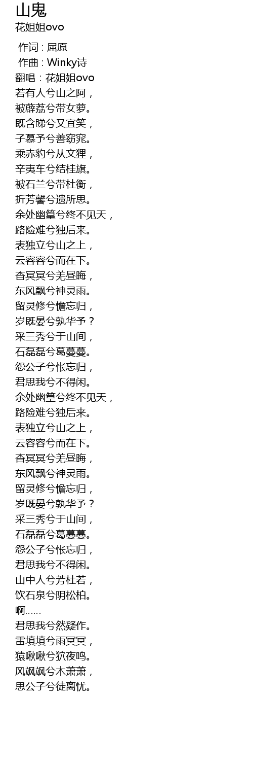 | [00:36.808] | 被薜荔兮带女萝。 |