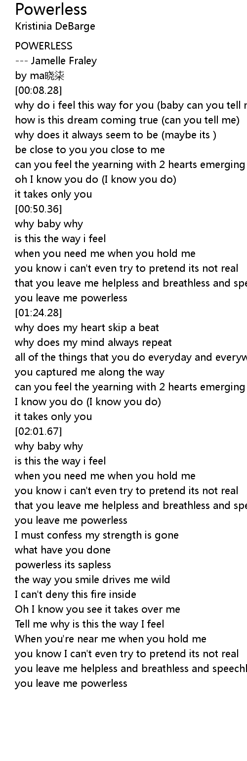 | [01:12.11] | that you leave me helpless and breathless and speechless |
