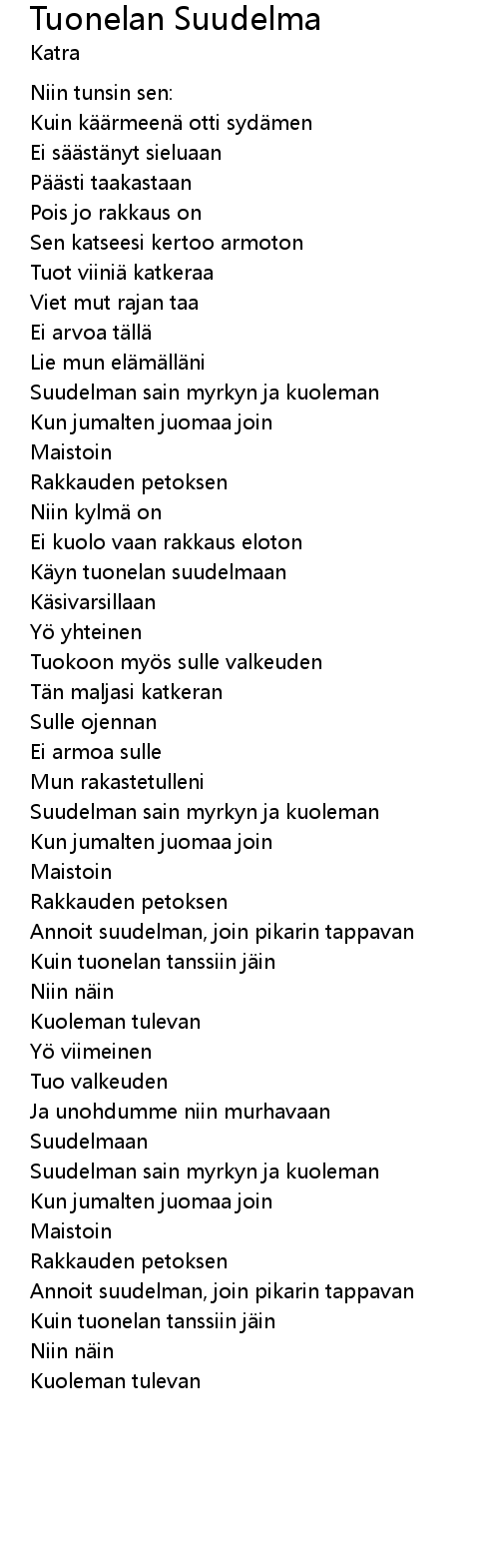 | Käyn tuonelan suudelmaan | |