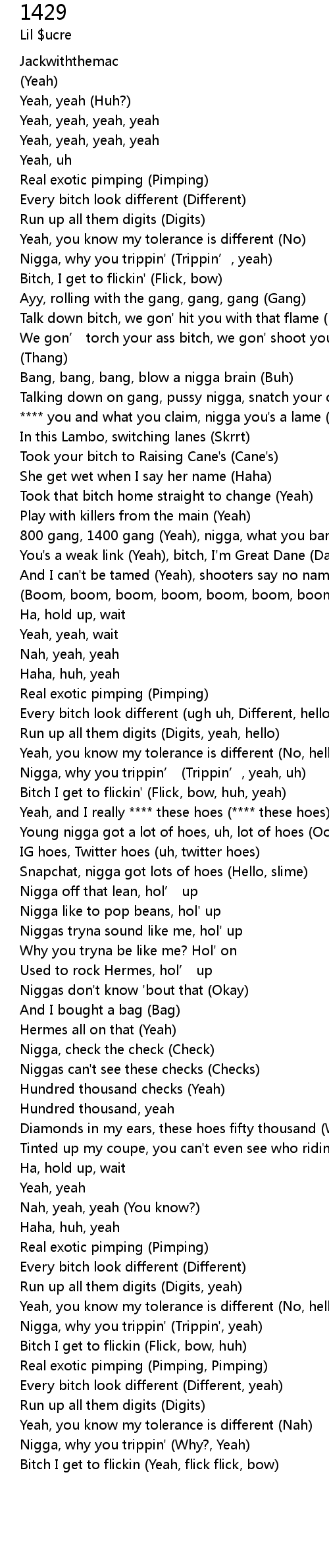 | [01:44.436] | Snapchat, nigga got lots of hoes Hello, slime |