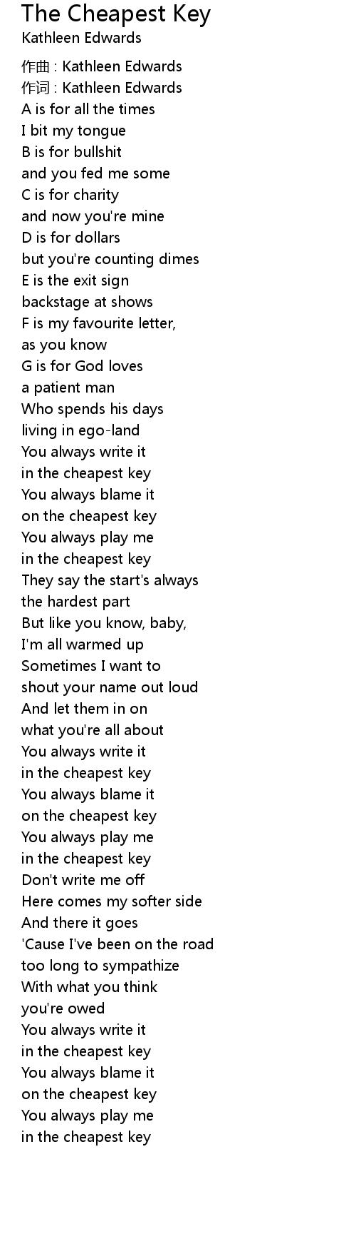 | Song | The Cheapest Key |