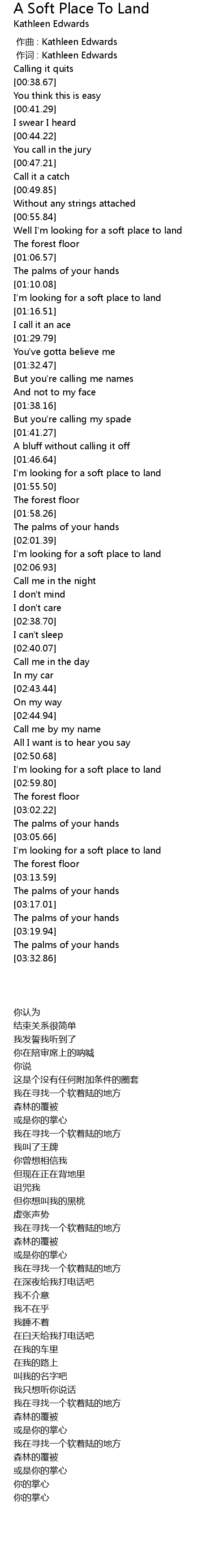 | [00:59.27] | Well I'm looking for a soft place to land |