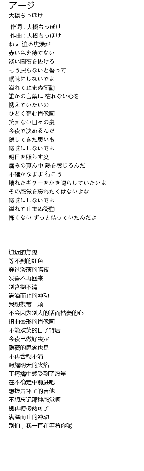 作词 : 大橋ちっぽけ |