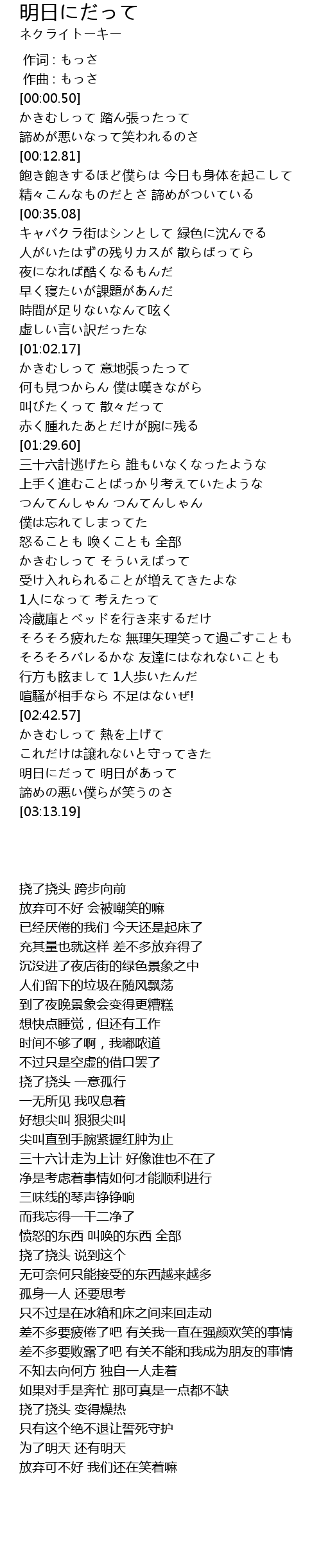 | [03:01.78] | 明日にだって 明日があって |