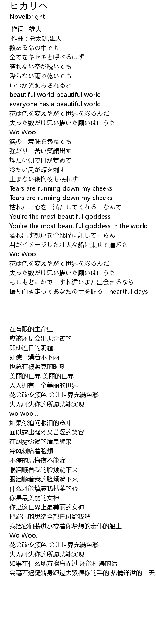 | [01:15.60] | 花は色を変えやがて世界を彩るんだ |