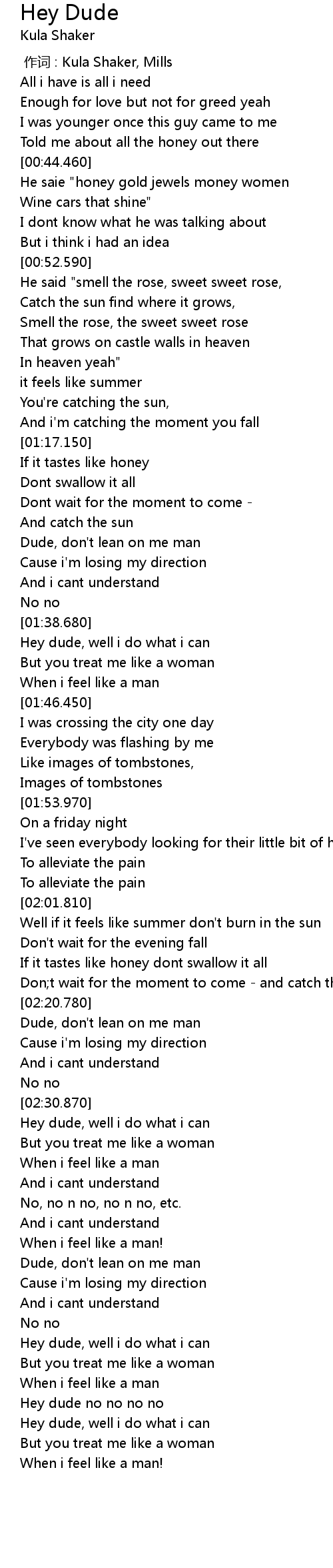 | [03:17.380] | Dude, don' t lean on me man |