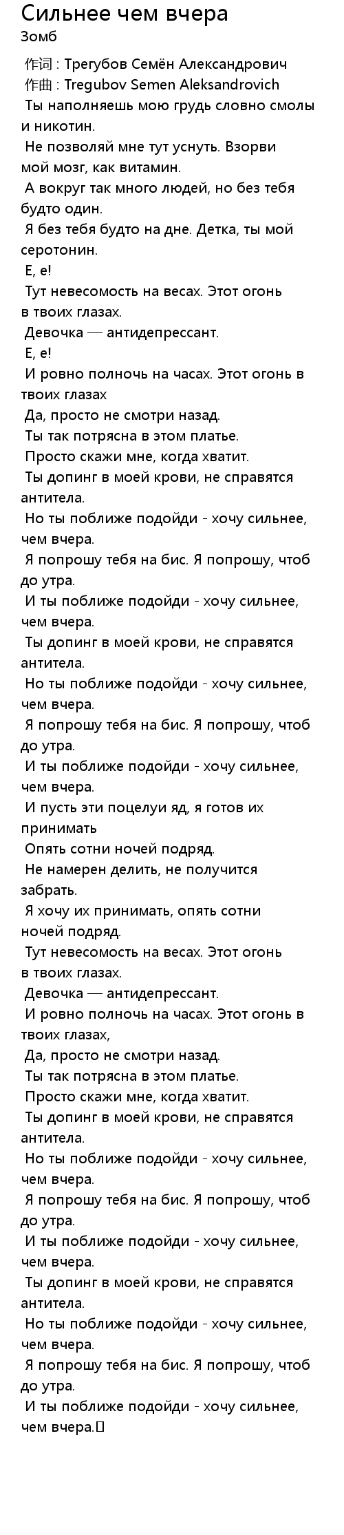作词 : Трегубов Семён Александрович |