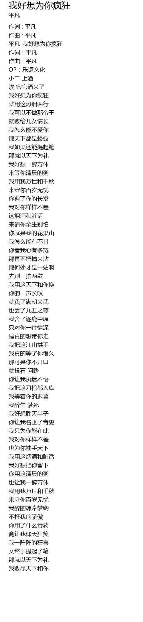 | píng fán wǒ hǎo xiǎng wèi nǐ fēng kuáng | |