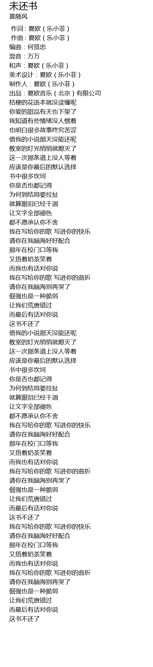| [00:00.000] | 作词 : 夏欧(乐小菲) |